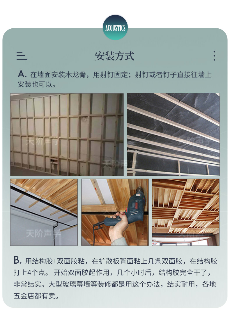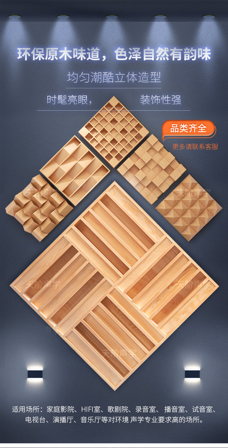 家裝場所:電視背景,床頭背景,大廳吸聲裝飾等。